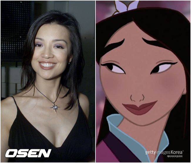 '뮬란'은 배우 밍나 웬에 의해 영감을 받았다. 그녀는 뮬란 목소리의 주인공이기도 하다. 2020년 실사 영화에서 그녀는 카메오로 출연하기도 했다.
