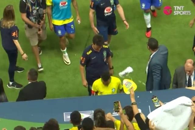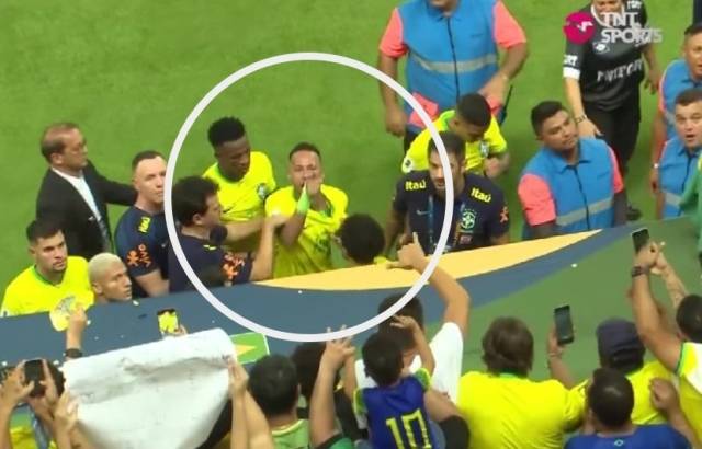 깜짝 놀란 네이마르와 히샬리송, 마르퀴뇨스, 비니시우스 등이 관중석을 올려다봤다. 네이마르는 해당 관중을 바라보고 삿대질했다. 옆에 있던 동료들이 네이마르를 말리며 라커룸으로 들어갔다. 페르난두 디니즈 브라질 감독대행은 “무례한 행동”이라며 팬들의 야유를 질타했다.