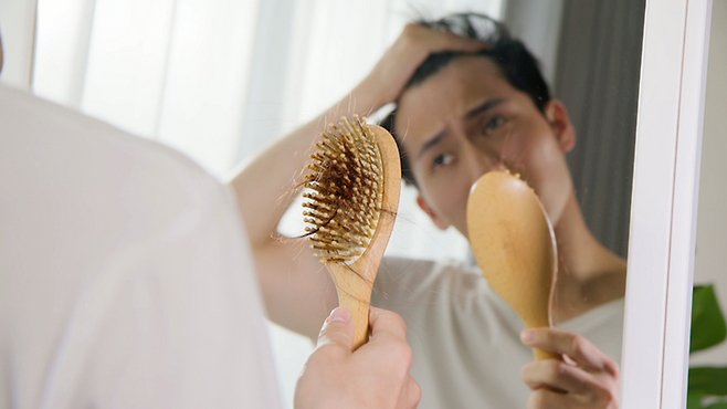 ์ด๋ฌํ ๋ณํ๋ ํํ ์๋๋ก๊ฒ์ฑ ํ๋ชจ์์ ๊ด์ฐฐ๋๋๋ฐ, ์ด๋ DHT๋ผ๋ ํน์ ํธ๋ฅด๋ชฌ๊ณผ ์ฐ๊ด๋์ด ์๋ค. ์ด ํธ๋ฅด๋ชฌ์ ํผ์ง ๋ถ๋น๋ฅผ ์ด์งํ๋ฉฐ, ๋ํผ์ ๋ฏผ๊ฐํ ๋ฐ์์ ์ผ์ผ์ผ ํ๋ชจ ์๋๋ฅผ ์๋น๊ธธ ์ ์๋ค.