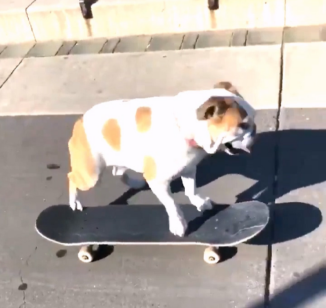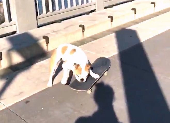 그런데 알고 보니 사실 이 스케이트보드는 이 강아지의 것이 아니라고 하네요.