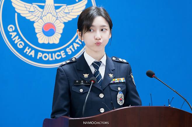 경찰 정복을 입은 차림으로 볼에 바람을 넣고 있는 그의 반전 모먼트는 캐릭터와 온도 차를 보여주며 시선을 사로잡고 있다. 또한, 디테일을 놓치지 않으려 진지하게 모니터링에 집중한 모습에서는 연기에 대한 남다른 열정이 엿보인다.