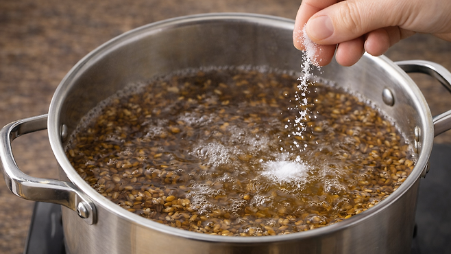 의외의 비결은 소금 한 꼬집이다. 짠맛을 내려는 목적이 아니라, 보리의 구수함을 끌어올리기 위한 역할이다. 이 작은 차이가 보리차의 인상을 완전히 바꾼다.