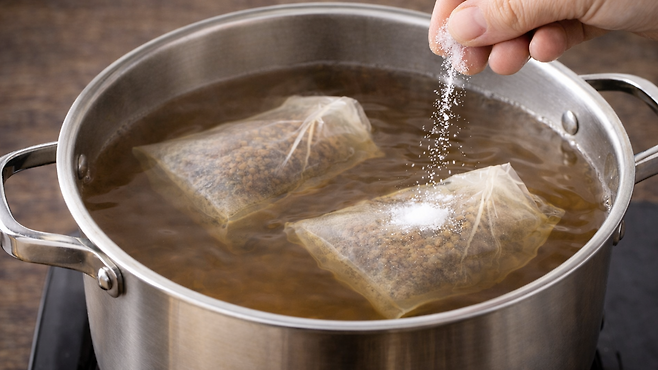 이 원리는 홍차에 소량의 소금을 넣었을 때 풍미가 깊어지는 현상으로도 알려져 있다. 보리차 역시 같은 메커니즘이 적용된다. 단, 손끝으로 집은 한 꼬집이 기준이다. 짠맛이 느껴질 정도면 오히려 실패다.