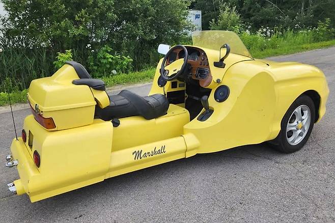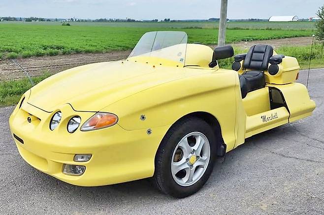 외신 카스쿱스(Carscoops)에 따르면 최근 페이스북 마켓플레이스에 독특한 중고차 매물이 올라와 화제다. 해당 차량은 캐나다 퀘백주에서 티뷰론을 기반으로 만들어진 것으로 알려졌는데, 기존의 후방 구조가 사라지고 혼다 모터사이클 '골드윙'의 차체를 결합한 형태를 갖췄다. 말 그대로 자동차와 바이크가 반반 융합된 것이다.
