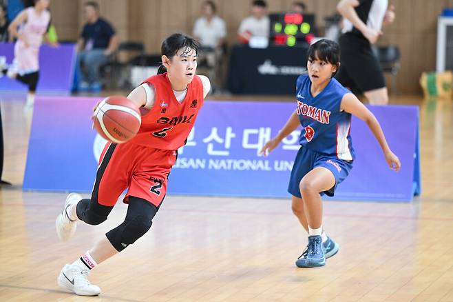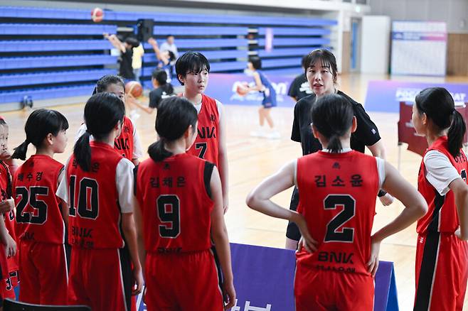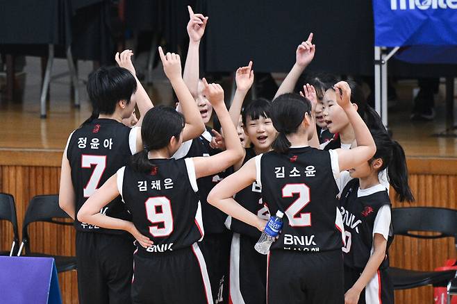 BNK는 29일 부산대학교 경암체육관에서 열린 '2025 WKBL 국제 유소녀 농구 챔피언십 with BNK금융' U12부 7-8위전 전주스포츠와의 경기에서 45-16으로 이겼다.