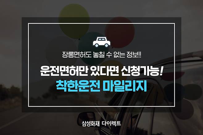또한 이 착한운전 마일리지는 운전면허를 보유한 모든 운전자가 신청할 수 있습니다! 그렇기 때문에 오랜 기간 운전을 하지 않는 사람도 미리 착한운전 마일리지를 신청해 둘수 있습니다!