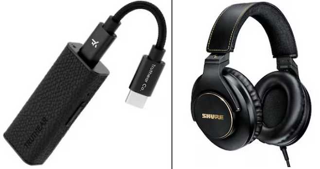 TRUTHEAR SHIO DAC와 함께 할 유선 헤드폰으로는 슈어 SRH840A을 추천한다. 100년의 역사를 자랑하는 세계적인 음향 기업인 슈어의 제품이며, 스튜디오 모니터링 및 크리티컬 리스닝에 특화된 소리를 들려준다. 믹싱 작업 등에도 활용될 수 있는 제품이기에 재미있는 소리보다는 정확한 소리에 중점을 뒀다고 보는 것이 좋다. 40mm 네오디뮴 다이내믹 드라이버가 장착되었고 3.5mm 케이블과 이어패드를 교체할 수 있도록 설계해 장기간 오래 사용할 수 있다.