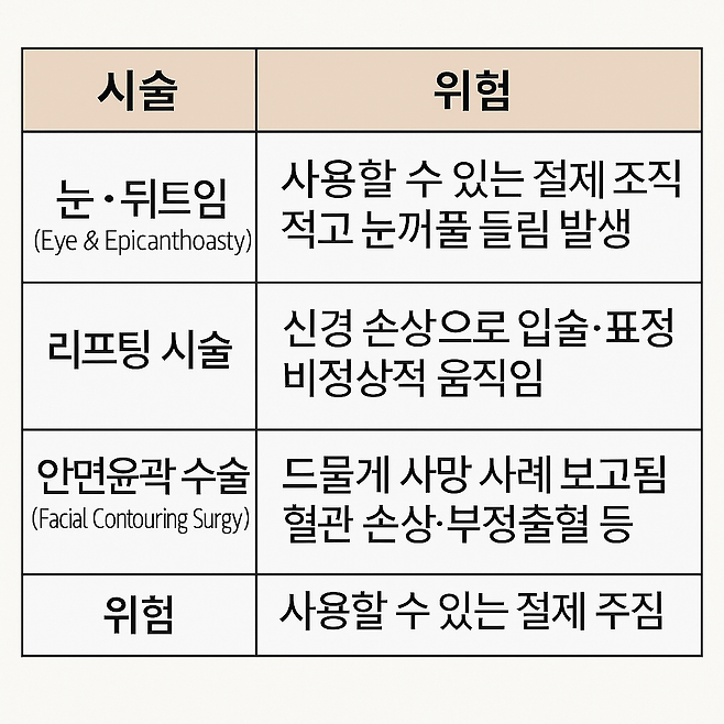 • 외모 불안·회복 만족감에 중독 → 반복 시술로 이어짐
