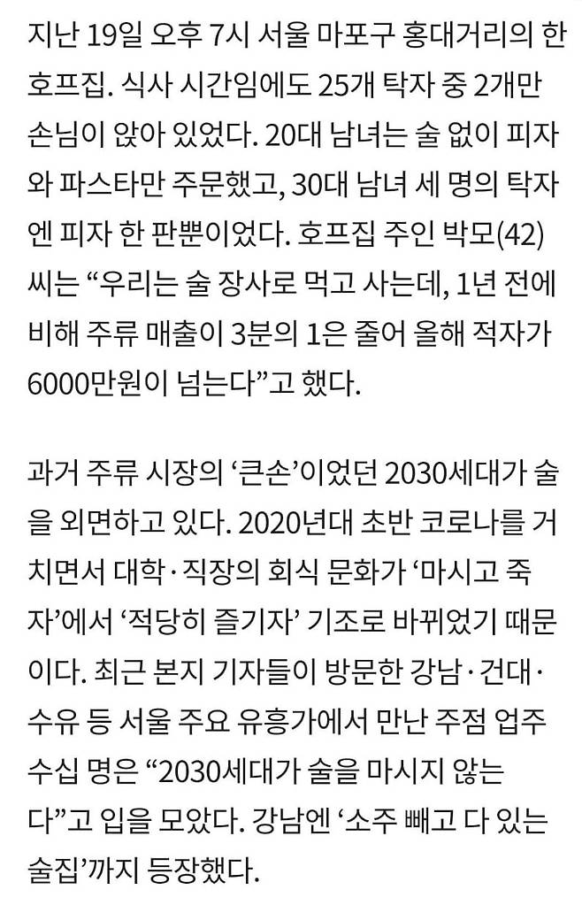“크~~” 가 사라졌다… 소주 안 마시는 2030