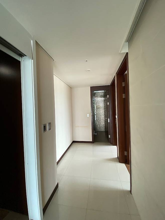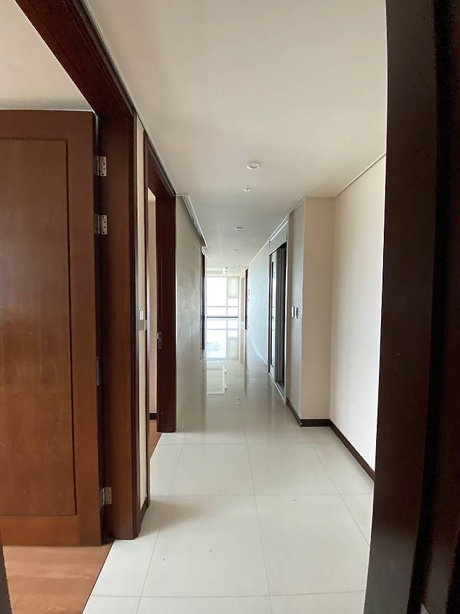 거실 통창에서 비추는 아침 햇살이 복도 끝 화장실까지 길게 드리워요. 사랑할 수 밖에 없는 햇살 선물이에요.