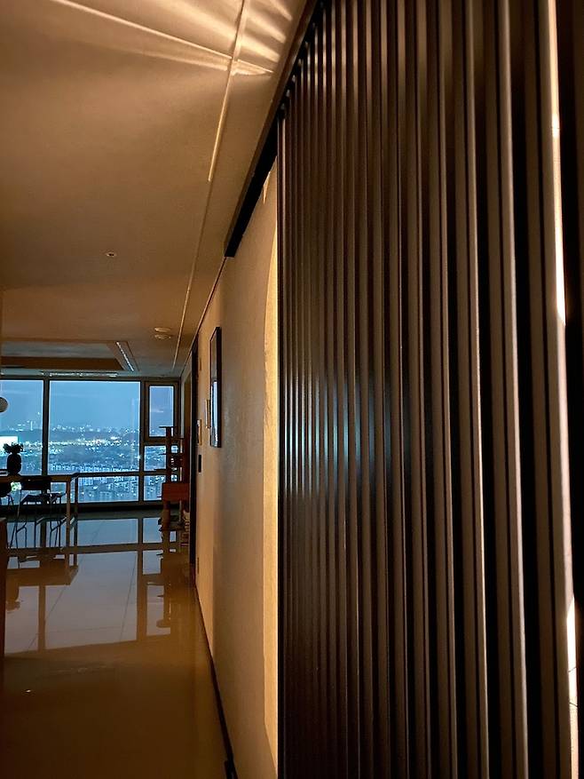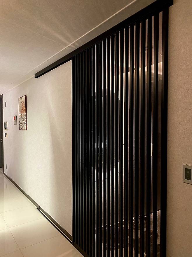 간살 중문은 정말 조명에 나타나는 쉐도우가 고전적인데 모던하기까지 해요.