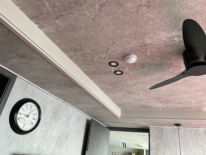 일반 아파트에 비해 천장 높아 개방감이 좋아서 실링팬을 설치를 했고, 튼튼한 천장 보강 작업과 안전한 전원 작업 공사를 하고 이전 집에서 사용했던 것을 가져와서 달기만 했어요. 실링팬의 장점을 알기에 안방에 까지 설치하기로 했죠.