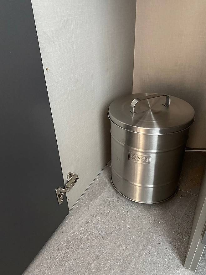 보조 사각 싱크볼까지 추가하고 싶었으나 3100 길이 아일랜드에 빠듯해서 포기하고, 백조 깜뽀르떼 860만 설치했어요. 엠보 처리가 되어 있어서 스크래치가 전혀 없어요. 음식물 통은 밧드야를 많이들 하시는데 손잡이가 우드여서 썩을 수 있을 것 같아 올 스텐으로 퀸센스로 4년째 잘 사용하고 있어요.