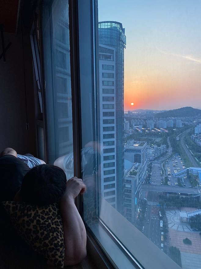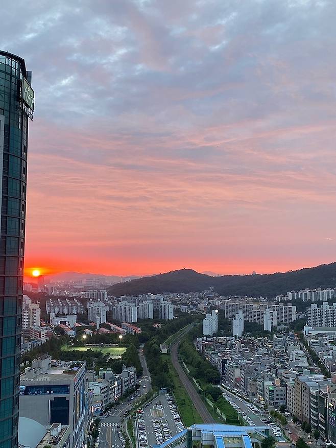 특별하게 이 공간은 일출, 일몰을 둘 다 볼 수 있는 공간이에요. 저 멀리 영종 앞바다가 보이는 나름 바다 뷰, 일몰 뷰랍니다. 음악이 끊이지 않는 공간에서 일출, 일몰을 매일 볼 수 있음에 감사해요.