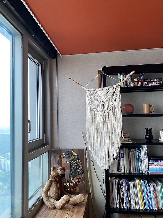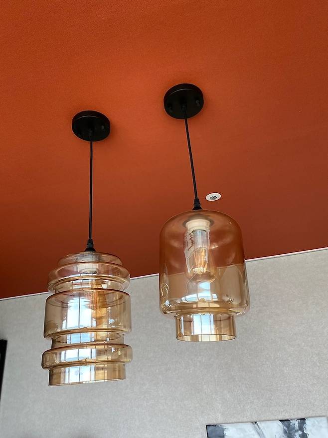 오렌지 천장지가 너무 이쁘죠..? 한 번쯤 포인트로 해보시길 추천드려요. 특별한 공간으로 연출이 가능하답니다..!!