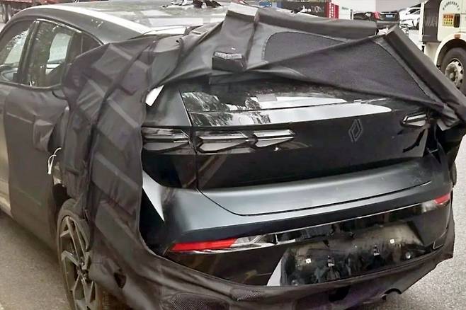 글로벌 자동차 커뮤니티 ‘뉴카스쿱스’에 공개된 오로라 2의 실물 사진은 그야말로 충격 그 자체다. 가장 먼저 시선을 사로잡는 후면 디자인은 기존 르노의 보수적인 이미지를 완전히 뒤집어놓았다. 테일램프는 세 개의 개별 유닛이 상하로 분리되며 안쪽을 향하는 화살표 형상으로 배치됐다. 그 중앙에 얇은 두께로 재설계된 로장주 엠블럼이 박혀 세련미를 극대화했다.