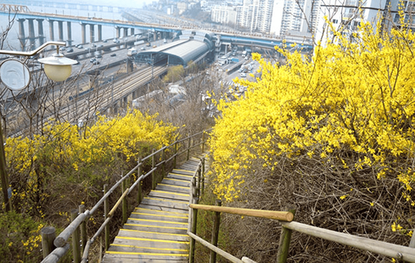 서울 한복판에서 만나는 개나리 명소, 바로 응봉산인데요. 매년 봄이면 이곳은 노란 개나리로 완전히 뒤덮여 장관을 이루는 곳입니다. 응봉산은 해발 81m로 그리 높지 않아 가볍게 등산하며 개나리 풍경을 즐기기에 딱 좋은데요. 정상에 오르면 서울숲과 한강이 한눈에 들어오는 멋진 전경까지 감상할 수 있어 더욱 매력적입니다.