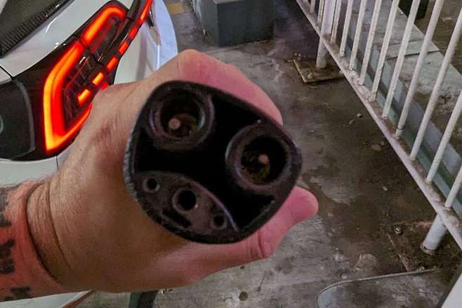 업계에 따르면 이 충전구는 교류 전원을 전달해 완속 충전을 담당한다. 그 아래 남은 충전포트 두 개는 직류 전원을 담당하는 것으로 급속 충전을 담당한다.