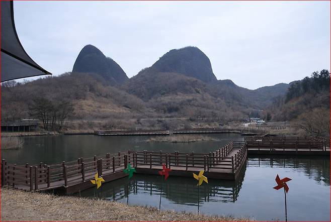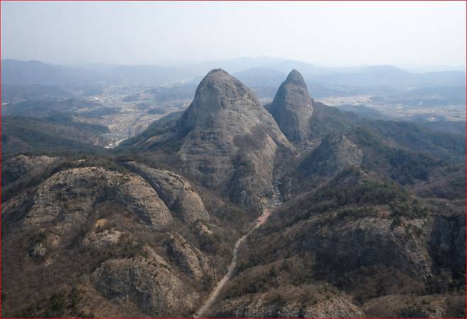 사양제를 지나면 ‘연인의 길’이라 불리는 숲길이 이어집니다. 잎이 떨어진 겨울 숲은 시야가 열려, 나무 사이로 마이산의 기암 능선이 드러납니다. 길 끝자락에는 암마이봉과 숫마이봉 사이의 고갯마루인 천황문이 자리합니다. 이곳은 마이산의 북·남부를 가르는 분수령으로, 약수터에서 잠시 숨을 고르기 좋습니다. 무엇보다도 천황문 부근에서 바라보는 역암 지형의 타포니는 겨울 햇살을 받아 굴곡이 더 선명해집니다.