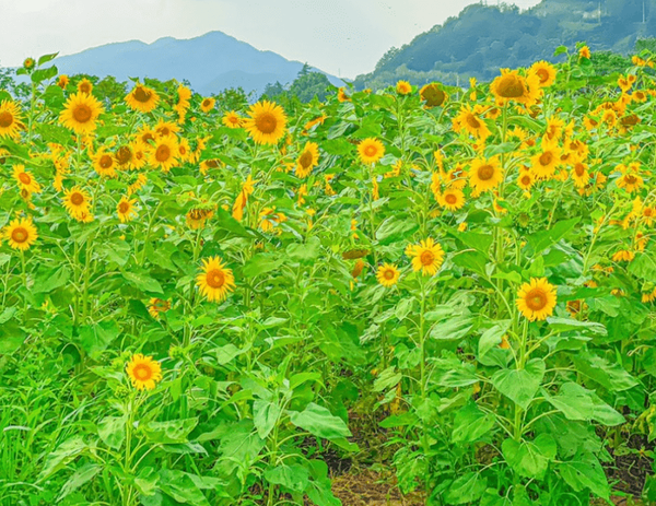 특히, 추천드리는 곳은 해바라기 1단지인데요. 1단지로 가기 전 마을 입구에서 노란 우산을 대여해 가시길 바라며, 해바라기가 아름답게 펼쳐진만큼 예쁜 사진을 남기기 좋으니 꼭 방문해 싱그러운 사진 남겨보시면 좋겠습니다.