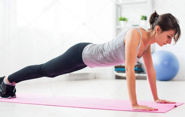 바닥에 엎드려 팔꿈치와 발끝으로 몸을 지탱합니다. 머리부터 발끝까지 일직선이 되도록 유지하며 복부에 힘을 줍니다. 허리가 꺾이거나 엉덩이가 지나치게 올라가지 않도록 주의하며 30초~1분간 버팁니다.