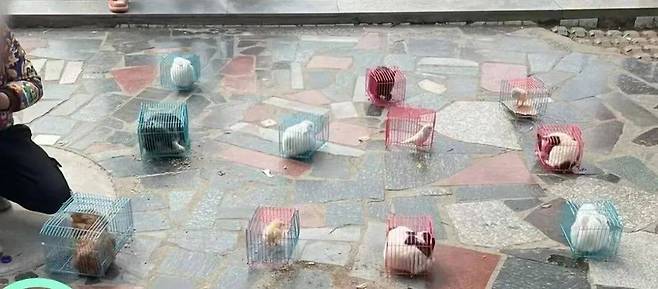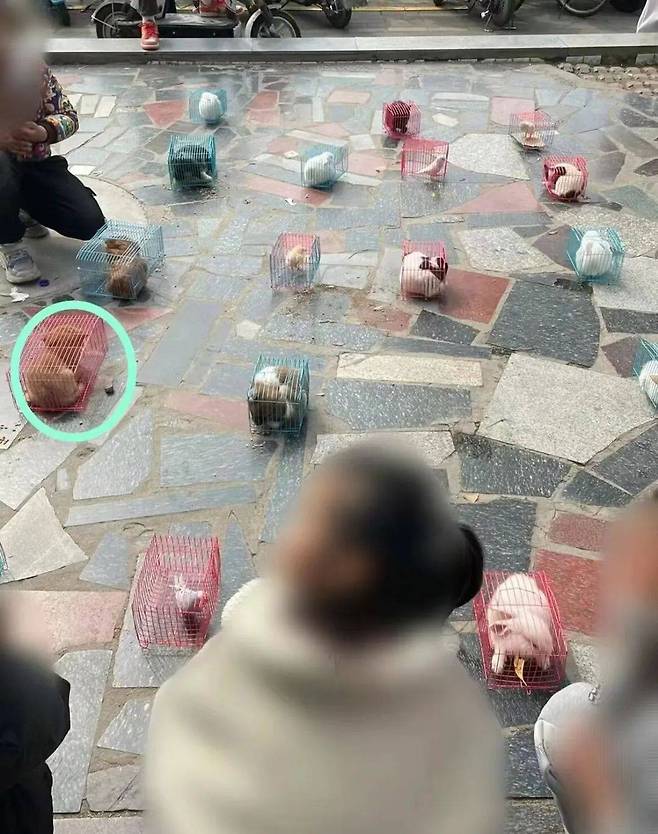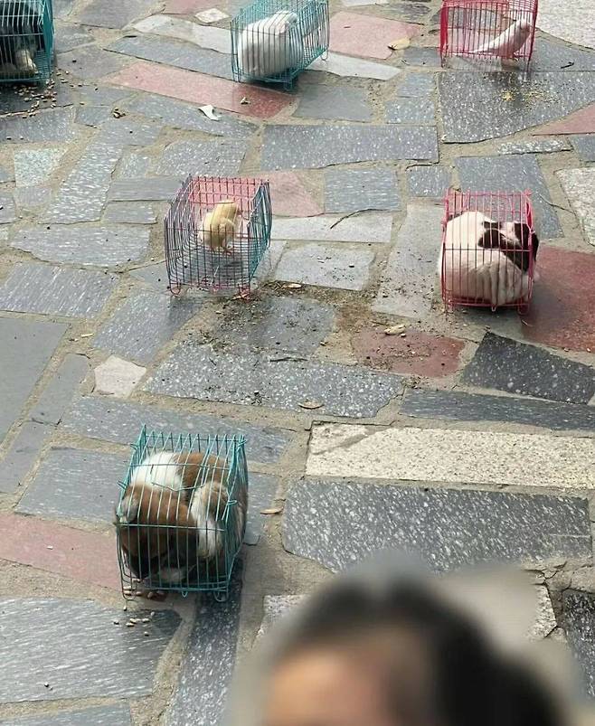 한 네티즌은 시장에서 강아지를 작은 철장에 넣고 판매하는 장면을 목격했습니다.