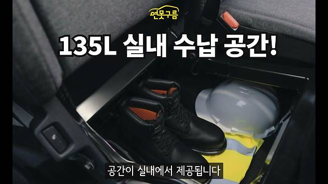 실내 수납 공간도 대폭 늘어 최대 135리터까지 수납할 수 있다. 시트 아래, 대시보드 상단, 헤드라이너 등 다양한 위치에 수납공간이 마련되어 활용도가 높다. 특히 1열 중앙 시트를 접으면 노트북 사용이 가능한 테이블 공간으로 변신한다.