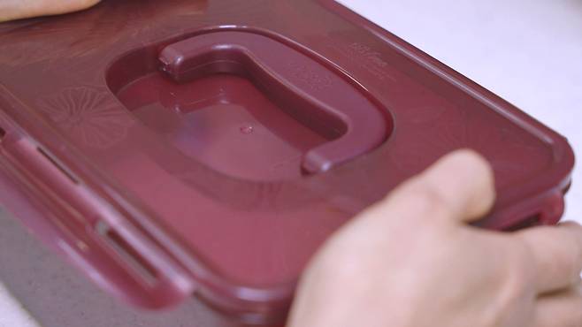 이 과정을 거치고 나면 김치통 속 밀가루 글루텐 성분이 냄새 입자를 흡수해 준다고 해요. 그래서 김치통에 밴 김치 냄새를 쉽게 제거할 수 있답니다.