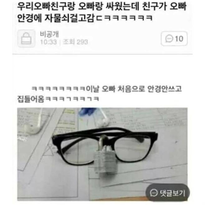오빠가 처음으로 안경안쓰고 집들어옴 ㅋㅋㅋㅋ