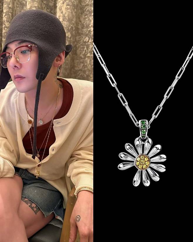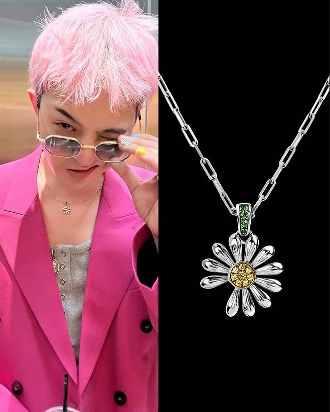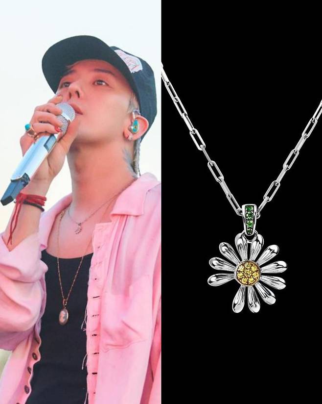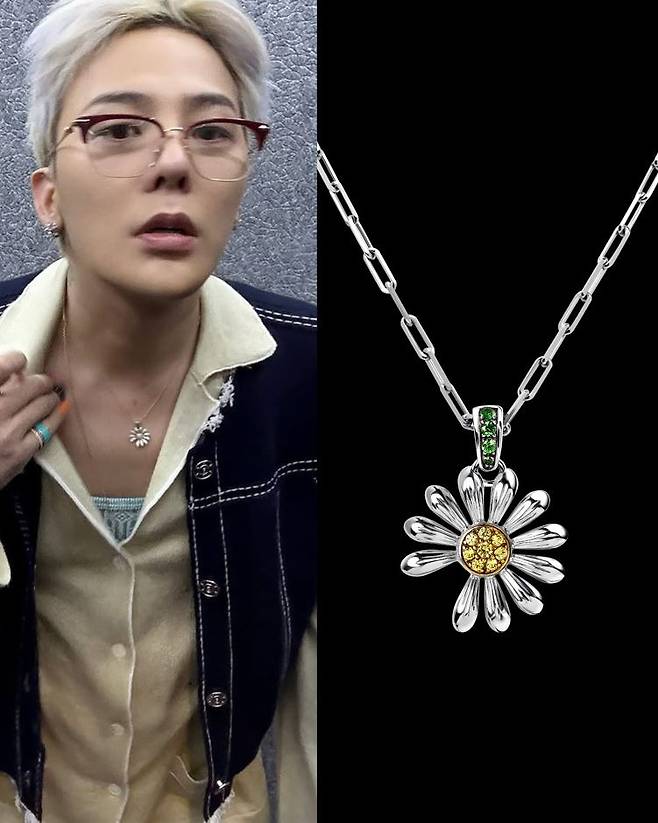 시계에서 출발한 애정은 주얼리로까지 이어졌다. 제이콥앤코가 GD와 함께 창의적인 파트너십을 확장하며 새로운 한정판 주얼리 컬렉션 'Jacob & Co. x PEACEMINUSONE' 펜던트를 선보인 것. 이번 컬렉션은 아티스트 GD만의 자기표현과 개성, 그리고 예술성에 대한 밀도 높은 철학을 담아 완성됐는데, 역시나 GD의 시그너처인 '데이지(Daisy)' 모티브가 확실한 존재감을 자랑했다. 종류는 옐로 사파이어와 옐로 다이아몬드 & 파베, 총 2가지. 옐로 사파이어 에디션은 지름 1.7cm에 925실버로 제작했으며, 18K 옐로 골드로 세팅한 옐로 사파이어와 그린 차보라이트가 특징이다.