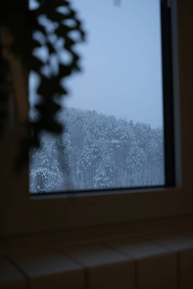 겨울에 눈이 온 날은 이렇게 설산을 바라보며 샤워를 합니다.
