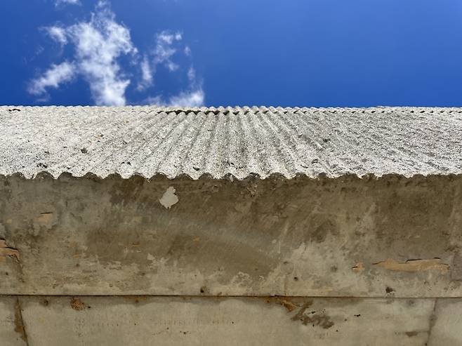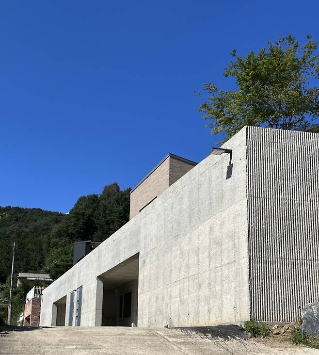 집이나 마당에 있을 때 주차장 외벽이 저희에게 보이지는 않지만, 집으로 올라오는 가파른 오르막길을 지나 맑은 하늘을 가르는 물결 모양 곡선을 보면 왠지 재미있는 무언가가 우리를 기다리고 있을 것 같은 즐거운 느낌이 듭니다.