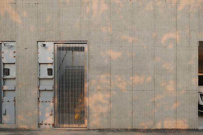주차장의 외벽 콘크리트는 올록볼록한 문양 거푸집(도드락 문양)을 사용하여 마감했어요.