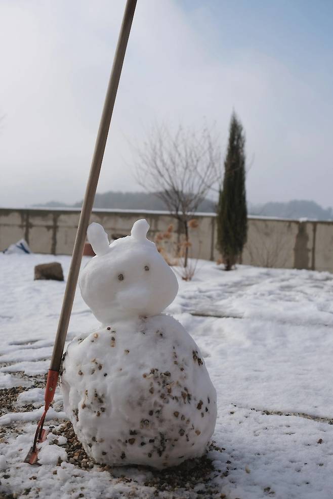 마당엔 곰돌이 눈사람(눈곰?)도 만들었고요.