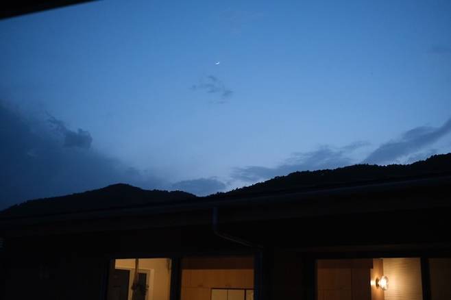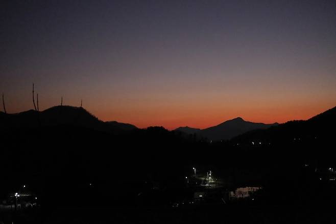 마당에서 보는 해가 지는 풍경입니다.