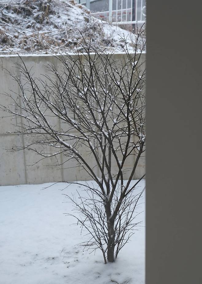 작년 겨울엔 유난히 눈이 많이 왔어요. 겨울이라 식물들이 모두 휴식하는 중에 하얗게 눈 쌓인 마당도 운치 있었어요. 크리스마스 이브에 폭설이 내렸는데, 새벽에 내리는 눈에 이브의 햇빛이 비쳐 눈이 반짝반짝 빛나던 기억이 납니다.