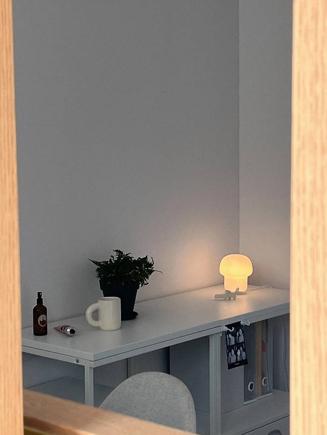 이사를 하며 침실이 꽤 넓어져서 침대와 서랍장, 협탁, 화장대를 모두 넣고도 꽤 넓은 공간이 남아있지만 아직은 빈 곳을 채우지 않고 휑한 공간을 한껏 즐기고 있습니다. 채우지 않아도 꾸미지 않아도 공간은 공간 자체로서 제 역할을 해낸다고 믿고 있어요.