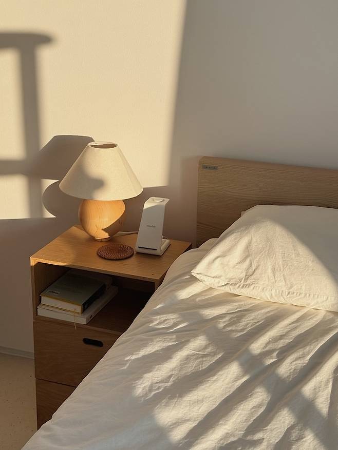 침구는 관리가 번거롭지만 화이트 침구를 고수하고 있습니다. 이 침구를 사용한 지 4년 정도 되었는데, 여러 번 세탁해도 사각 사각함이 유지돼요. 색이 조금 변했다 싶을 땐 세탁 후 쨍한 햇빛 아래에서 말리면 금방 새하얗게 돌아옵니다.