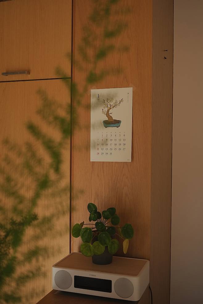 기둥 쪽에는 항상 달력을 붙여놓곤 합니다. 일러스트가 마음에 들어 일본에서 사온 달력이라 일본 공휴일이 표시되어 있네요.