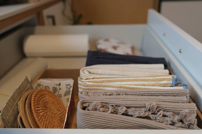 꼭 필요한 경우에는 사용하지만, 플라스틱 정리함이나 수납함을 선호하지 않아요. 깔끔하고 편리하지만 결국에는 언젠가 버려질거니까요. 각이 조금 안 맞고 덜 깔끔해도 물건을 잘 찾을 수만 있다면 어떤 것이든 환영입니다.