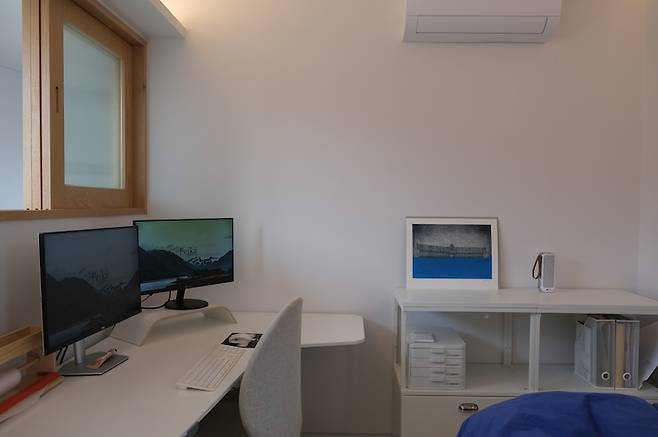 이름은 거창하게 설계실이지만, 업무를 위한 컴퓨터와 침대가 놓여있는 방입니다. 제가 잠에 예민한 편이라 업무가 늦게 끝나는 날엔 남편은 이곳에서 잠을 자곤 해요.
