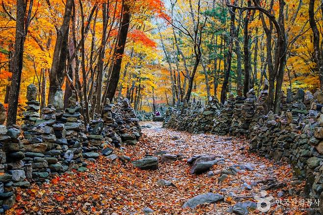 길 특징: 돌탑 3,000여 기, 완만한 산책길