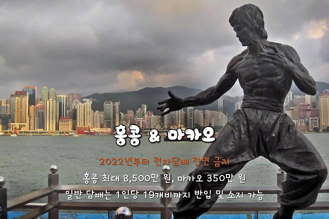 여행객이 전자담배를 휴대하거나 택배로 주문해 반입하는 것도 불법이며, 적발 시 최대 5만 홍콩달러(약 8,500만 원)의 벌금과 6개월 징역형이 부과될 수 있습니다.