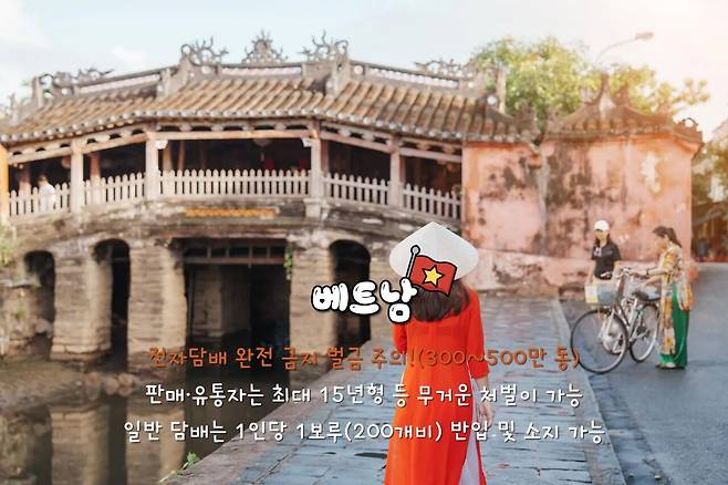 ✔베트남은 1인당 200개비(또는 시가 100개비, 파이프 담배 500g)까지 면세로 반입 가능합니다.