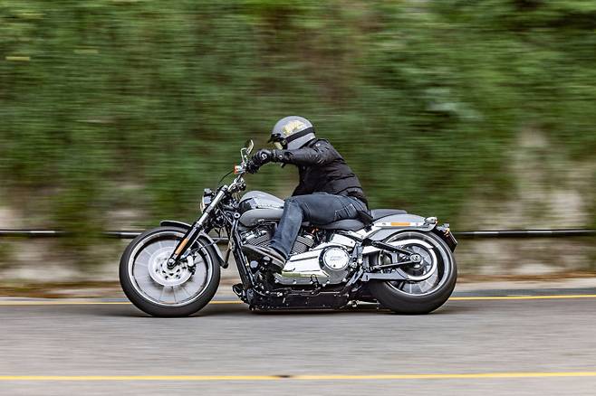 이러한 승차감을 바탕으로 엔진의 굵직한 토크를 이용해 낮은 회전수로 밀어붙이며 달리는 느낌은 환상적이다. 이건 다른 브랜드들이 벤치마킹하고 흉내 내려 노력하지만 결코 따라잡지 못하는 영역이다. 텅텅거리는 소리와 함께 투박한 듯, 하지만 절도 있게 끼워 맞춰지는 변속기 역시 할리다운 감각을 전해준다. 엔진의 열이 오른 뒤에는 아이들링 상태에서는 엔진의 회전수가 800rpm 언저리로 뚝 떨어져 할리데이비슨 특유의 ‘포테이토’ 박자감에 가까운 사운드를 들을 수 있다는 점도 좋다. 순정 배기음이 볼륨은 작지만 소리 자체는 꽤 괜찮아서 배기 튜닝 없이도 공랭 트윈의 매력을 어필한다. 이러한 요소들이 모여 할리데이비슨이 추구하고 있는 감성적인 라이딩을 공감하게 한다.