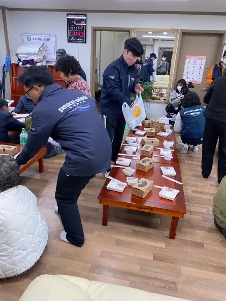 "재난 구조 단체에서 치킨이랑 뭐랑 해가 오셨네. 아이고, 진짜 감사합니다. 고맙습니다."