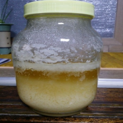 진짜 천연꿀은 겨울이나 온도가 내려가면 밑부분부터 점점 결정이 생기며 자연스럽게 굳습니다.
