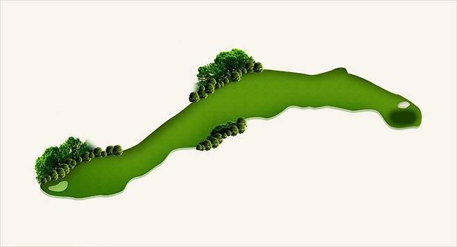 C/H에서 리프트를 타고 힘들게 올라온 티박스에서 확트인 시야를 보며 첫 티샷에 힘이 들어가는 Par 5 도그레그 홀은 골퍼들에게 잊을 수 없는 경험을 선사합니다.
