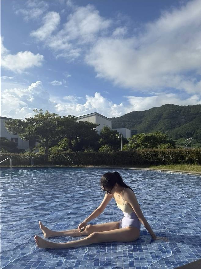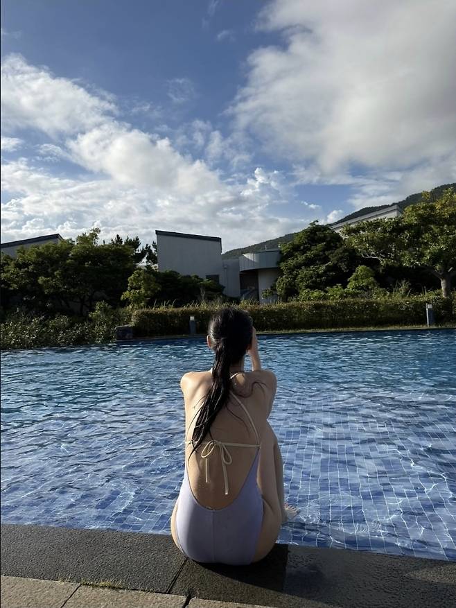 앞면 컷아웃 디테일로 포인트를 준 스윔웨어는 스포티하면서도 감각적인 실루엣을 연출하며, 정호연의 군살 없는 몸매와 매끈한 비율을 더욱 부각시켰습니다.