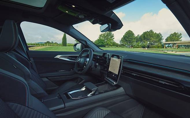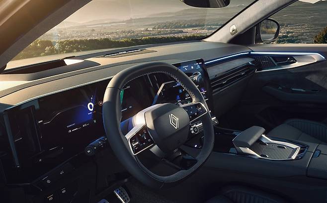 그 다음은 실내 공간. 시트 디자인과 소재 변화로 고급감이 더해졌고, 흡음 설계 강화 및 이중 접합 유리를 통해 정숙성도 강화됐다. 테크노(techno) 트림에는 98% 재활용 직물 `에게(Egée)`가 적용됐으며, 에스프리 알핀(esprit Alpine) 트림은 블루 컬러 스티치와 카본 패턴, 알칸타라 마감 등으로 스포티한 감성을 강조한다.